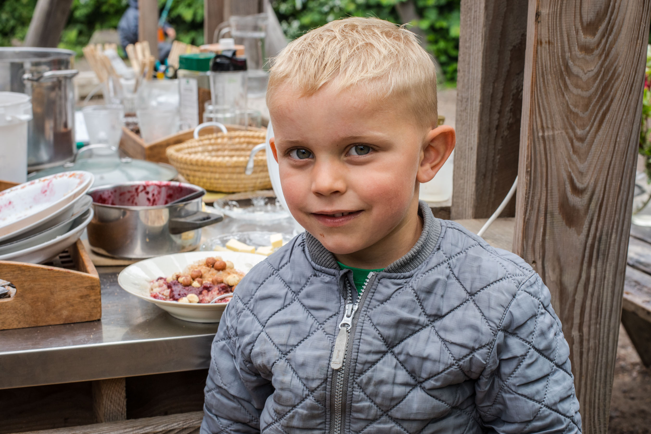 Barn spiser hjemmelavet grød til frokost i Lille-Gryn.