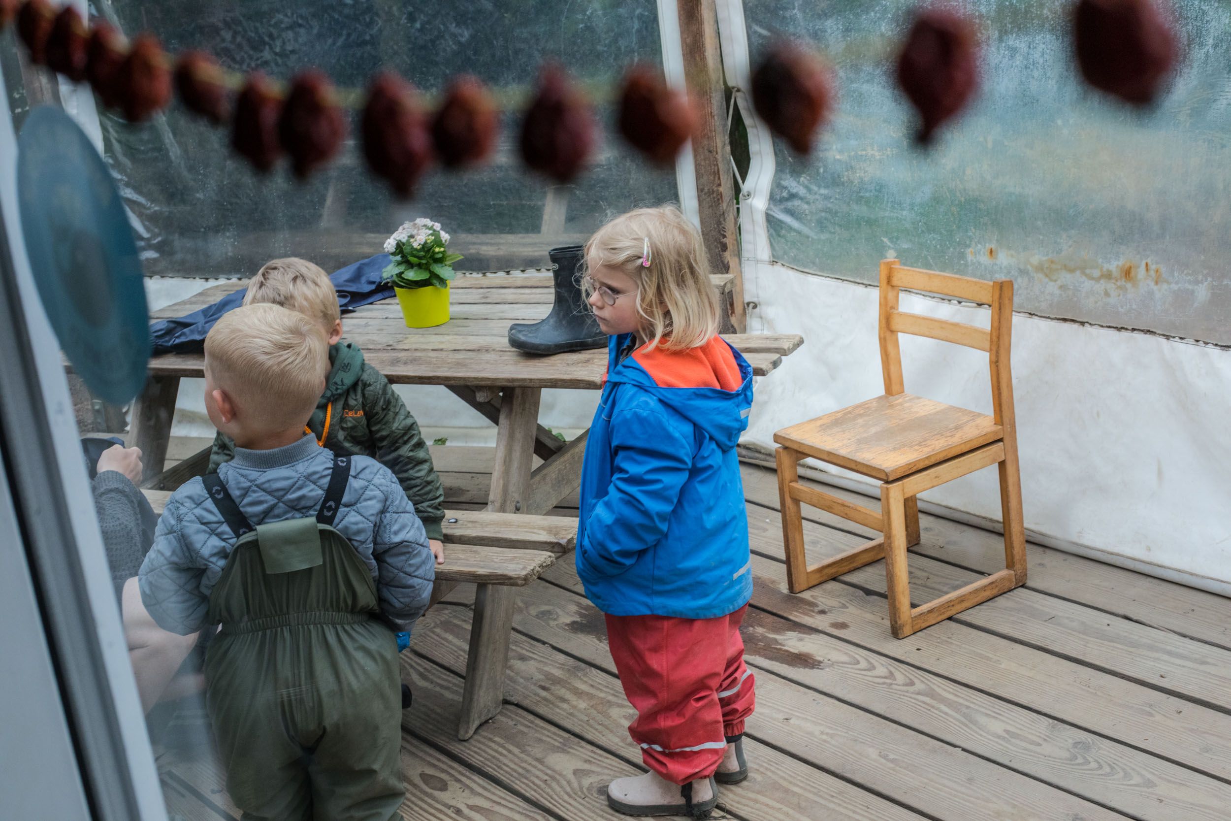 Børn i Lille-Gryn gør sig klar til at gå ud og lege.