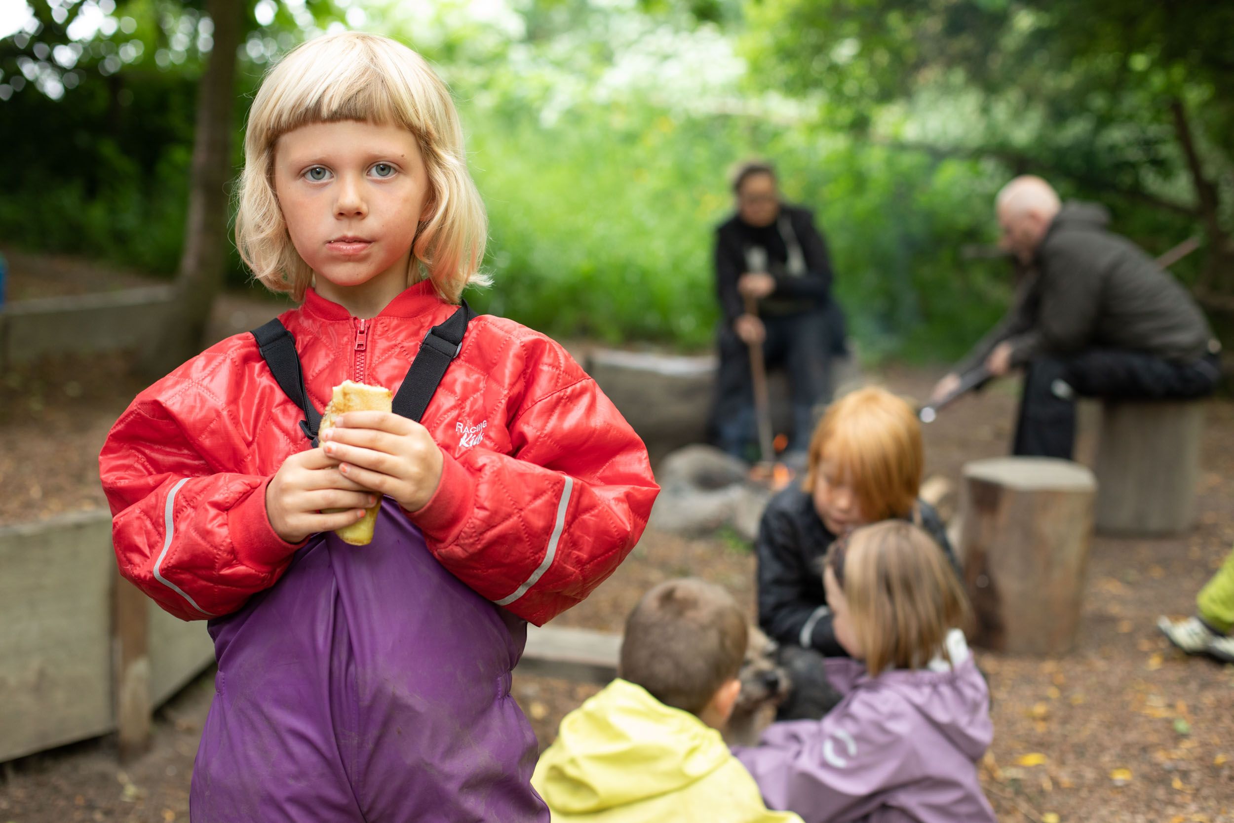 Børn i Lille-Gryn hygger ved bålpladsen.